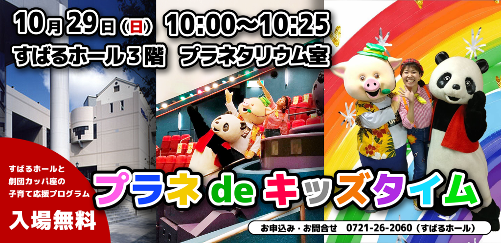 10月29日(日)、大阪府富田林市のすばるホール3階プラネタリウム室にて、プラネdeキッズタイムが開催されます。