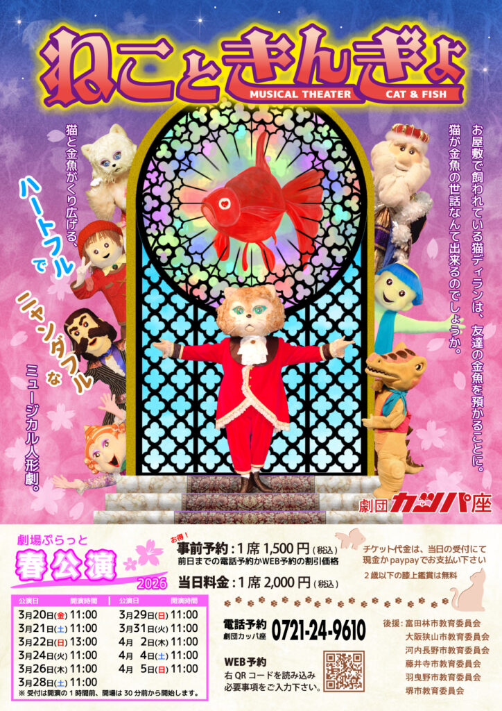 春公演「ねこときんぎょ」 投稿日 2026年2月14日 著者 kappaza2021 カテゴリー 未分類 チケットWEB予約 チケット電話予約(9:00-17:00) シェア ツイート ブックマーク Feedly LINE